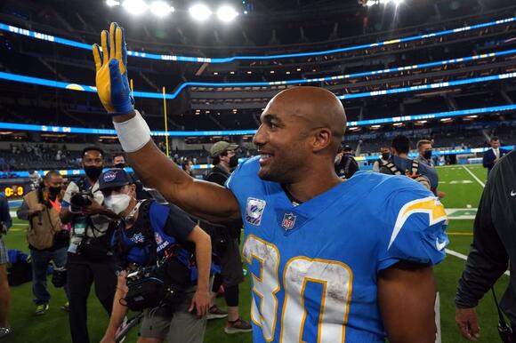 AP Austin Ekeler scored three touchdowns including a 3-yard score with 131 remaining as the Los Angeles Chargers defeated the Cleveland Browns 47-42 in a wild shootout Sunday. Two stats to keep in the back of your head while watching. Carrs pass to Ruggs is incomplete and the Raiders turn it over on downs.