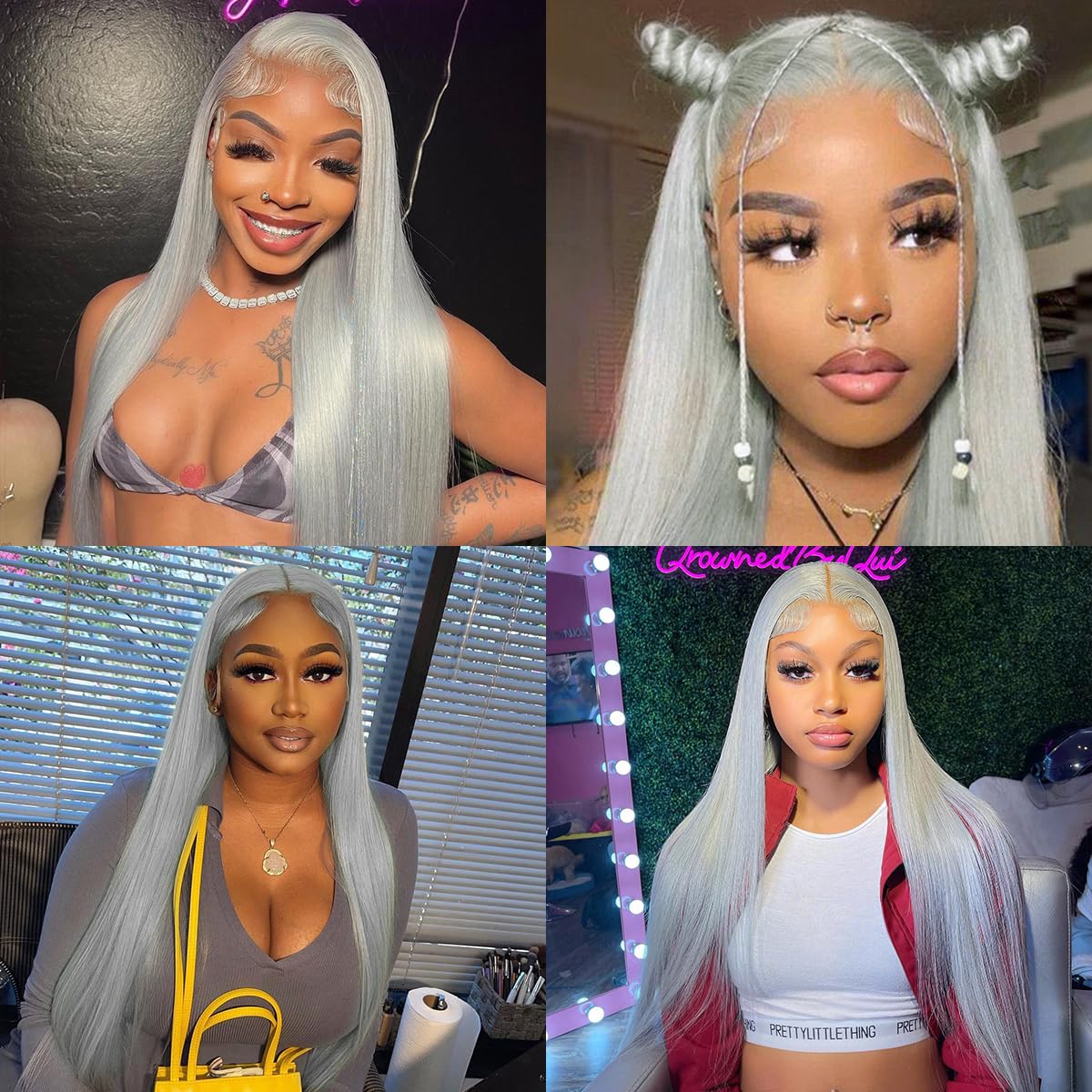 Grey Color Human Hair Lace Front Wigs Icy Silver Gray Wig Asteriahair
